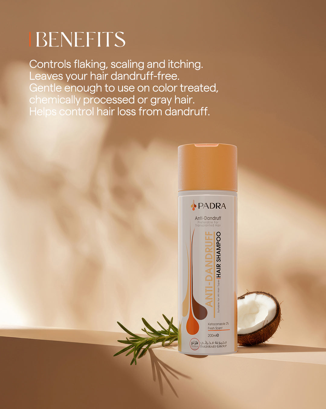 شامبو لطيف مضاد للقشرة، مُصمم خصيصًا لعلاج فروة الرأس، وتقليل تساقط الشعر المرتبط بالقشرة دون التأثير على لون الشعر أو إتلاف الشعر المعالج.